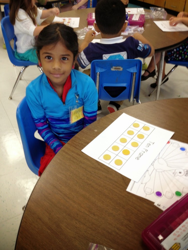 Math has been really fun this week. We have been counting and practicing our numbers. We used a Ten Frame today to practice our numbers. We put red and yellow counters on our ten frame to make different numbers. Mrs. Deaton is still teaching us about our number poems. Here is another poem we learned... Make a circle and then a line. That's the way to make a 9. Math is a lot of fun in Kindergarten. We also get to play with Math Manipulatives during the day. We like the unifix cubes, pattern blocks and the geoboards.